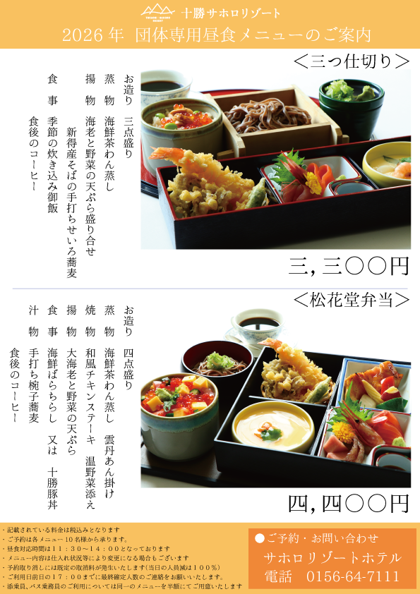 サホロリゾートホテル団体昼食メニュー